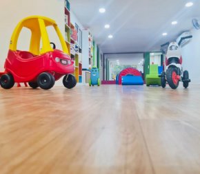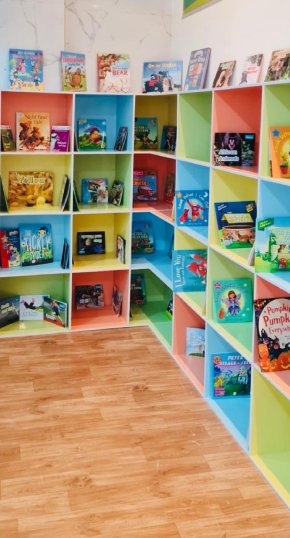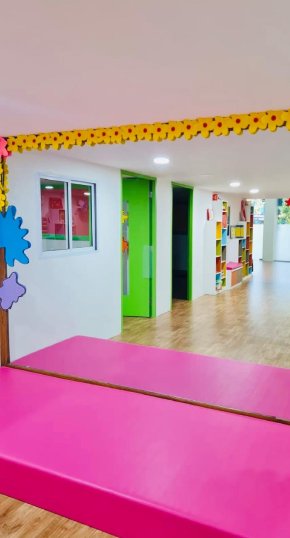Bright, cheerful classrooms with child-friendly furniture and engaging indoor play areas.